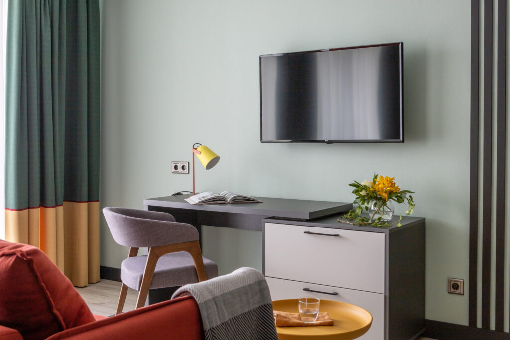 Елена Чигирёва: Для меня главное эмоции, которые испытывают гости, удобство размещения и функционал. Так как сейчас путешествия в экзотические страны стали более сложным и дорогим удовольствием, мне хотелось, чтобы, оказавшиеся в этих апартаментах гости могли бы переключиться, испытать новые положительные эмоции, проводя время в ярких красках. Ведь обычно в своих квартирах люди предпочитают нейтральные тона из-за боязни устать от цвета, а тут не страшно, ведь яркая палитра только на время отдыха.