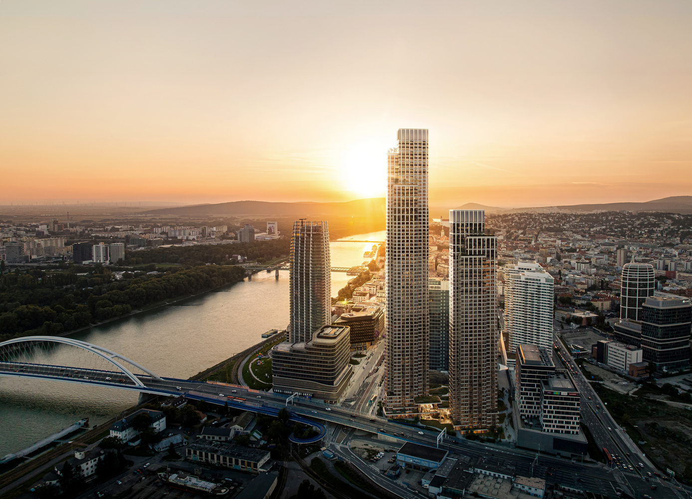 Проектная организация KCAP была выбрана для проектирования двух новых небоскрёбов в Братиславе, Словакия. Эти башни высотой соответственно 260 и 180 метров станут ключевыми дополнениями к горизонту города и внесут значительный вклад в его городской ландшафт, обеспечив более 1100 жилых единиц панорамным видом на город и ландшафт. Этот район, когда-то являвшийся промышленной зоной, подвергся существенной реконструкции, превратившись в многофункциональный городской центр, объединяющий жилые, коммерческие и развлекательные пространства. Новые башни поддерживают это продолжающееся обновление города, предлагая лёгкий доступ к общественному транспорту и близлежащим культурным достопримечательностям.