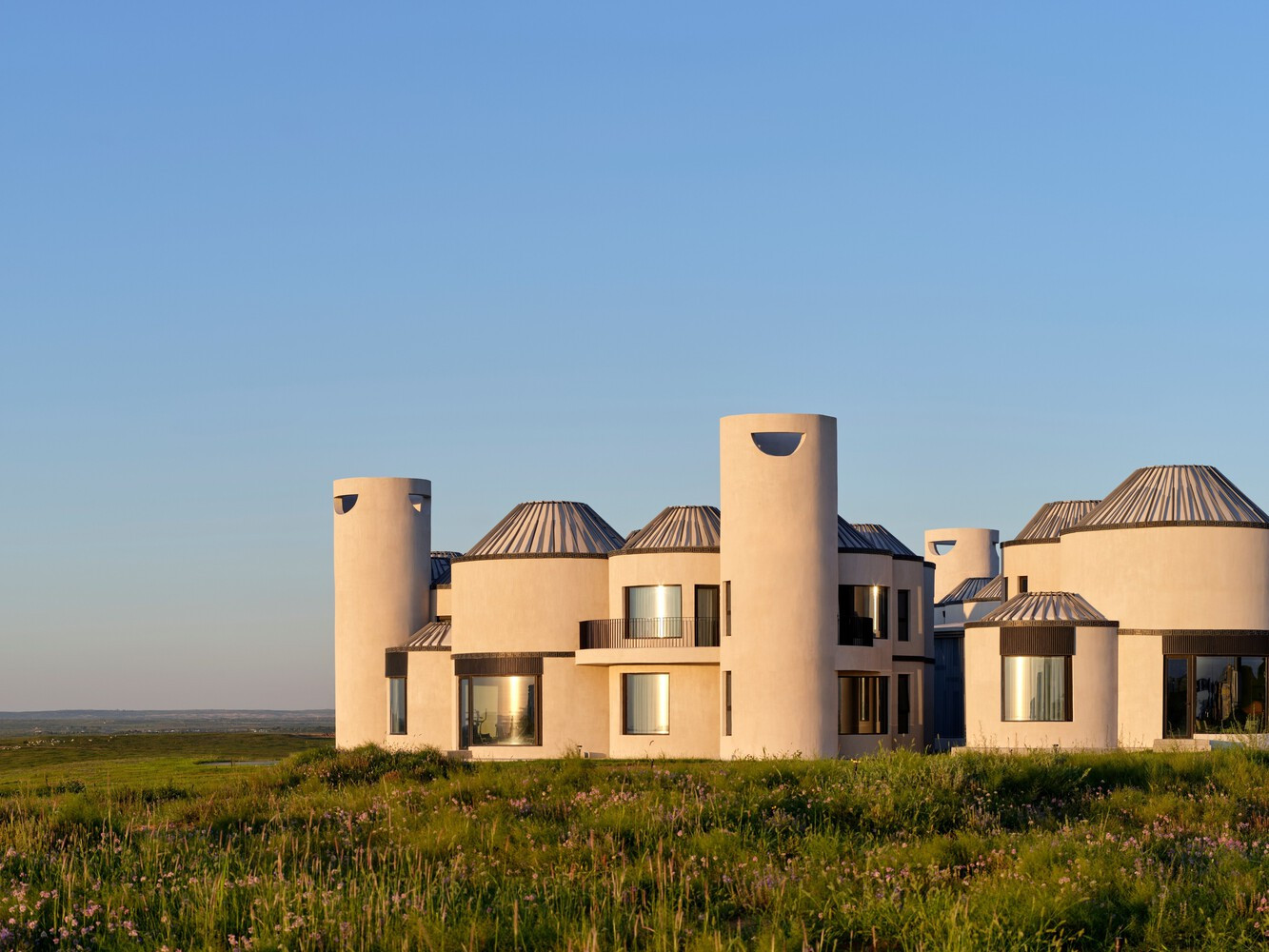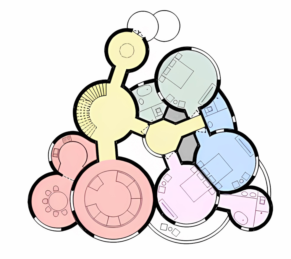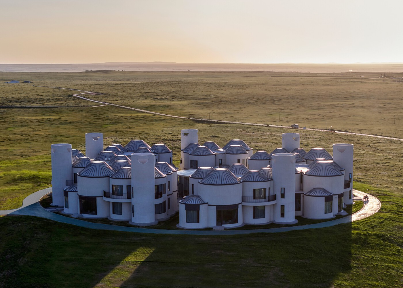 Проект включает фойе, чайные, гостиные, лестничные клетки и спальни, образуя впечатляющую группу цилиндрических зданий. Ключевые элементы традиционных юрт, такие как центральные круглые отверстия и имитация деревянных конструкций, ярко выражены, вызывая соответствующие метафоры и ассоциации.