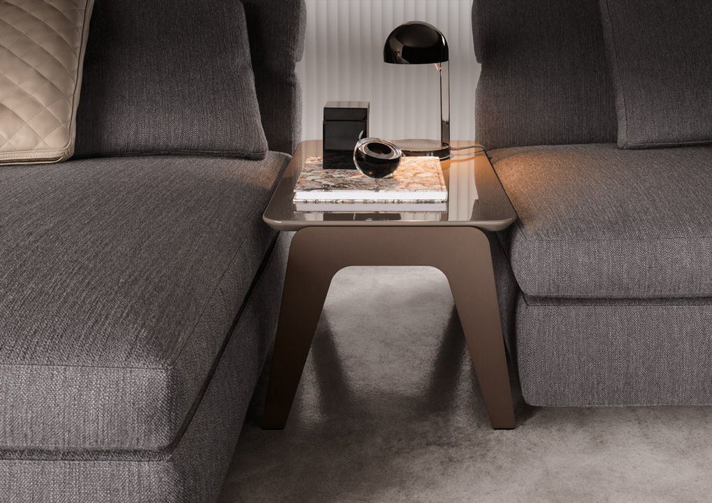 Это не индустриальный хайтек 90-х, а ювелирная работа с формой. Металл выступает как оправа для лака и шелка. Хромированные ножки диванов, стальные кофейные столики, отполированные до зеркального блеска, «охлаждают» интерьер, делая его более собранным и архитектурным.
