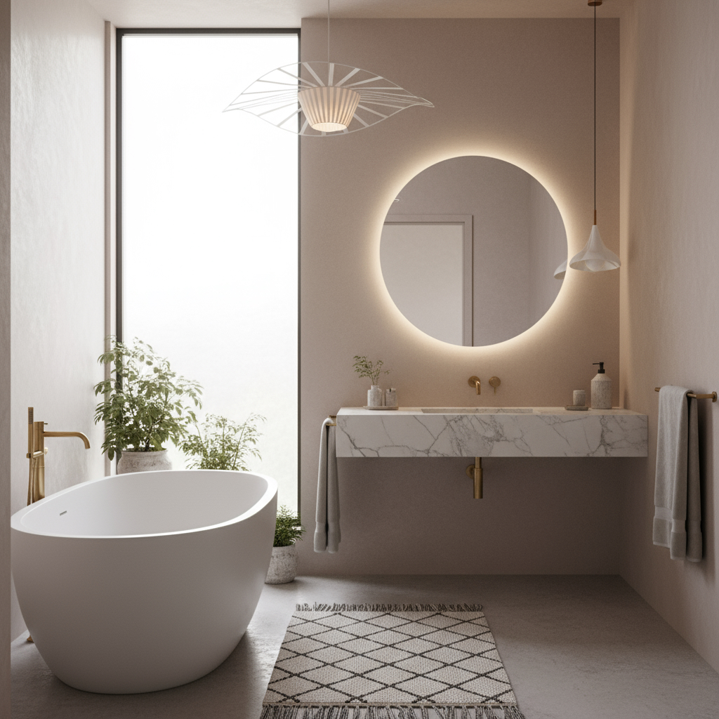 В одной спальне бежевый вдруг стал невероятно романтичным, но при этом не приторным. Весь секрет был в едва заметном розовом пигменте, который раскрывался в лучах утреннего и вечернего солнца. Такой оттенок смягчает свет, делает его более деликатным и теплым. Пространство моментально наполняется воздухом и легкостью, а кожа в отражении зеркал выглядит свежее — приятный бонус.
