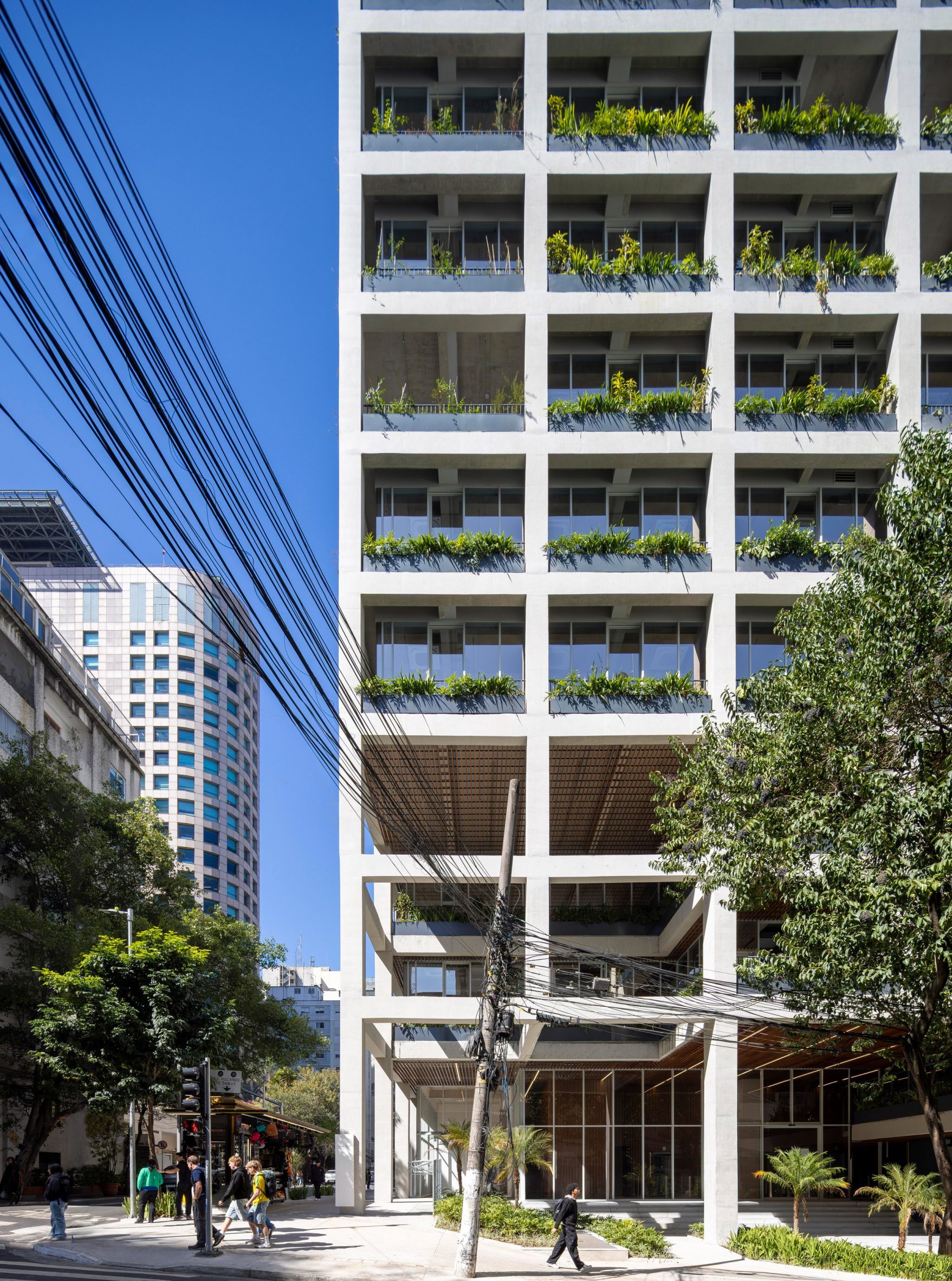 Небоскрёб с непрерывной сеткой из кашпо в Сан-Паулу, Бразилия