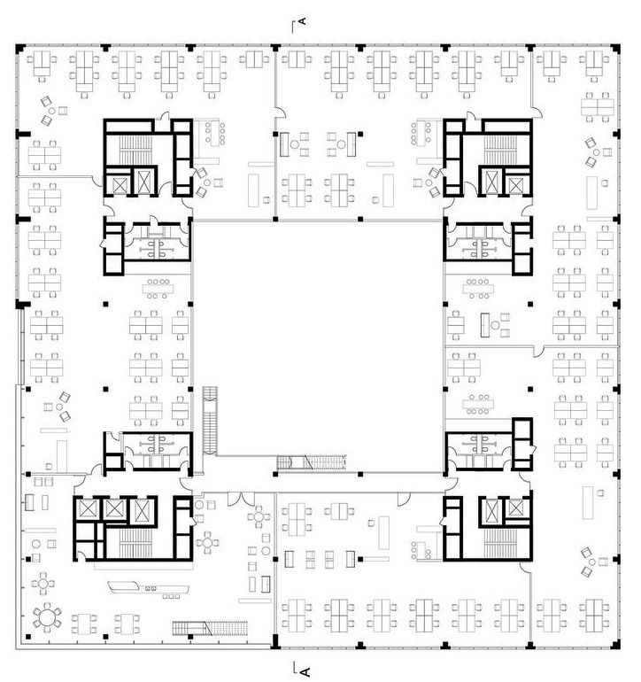 Новое здание состоит из двух частей: семиэтажного здания квадратной формы и башни, общая высота которой достигает почти 60 метров в юго-западном углу. Квадратная планировка здания позволяет гибко использовать отдельные офисные помещения.