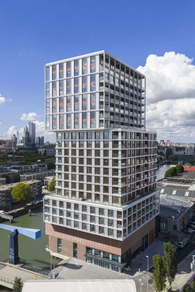 Отель "De Piek", расположенный на оконечности острова Фейеноорд, высотой 74 метра, превращает заброшенную автостоянку в оживлённый прибрежный центр. Эта жилая башня привносит новую жизнь в ранее заброшенную промышленную зону на юге Роттердама, состоящую из 142 квартир и кафе на первом этаже, которое открывает набережную для общественного пользования. Стратегически расположенный рядом с мостом "Piek", комплекс "De Piek" является частью более широкого плана по преобразованию бывшей промышленной зоны в оживлённый городской квартал, сочетающий в себе жилые, коммерческие и общественные функции.