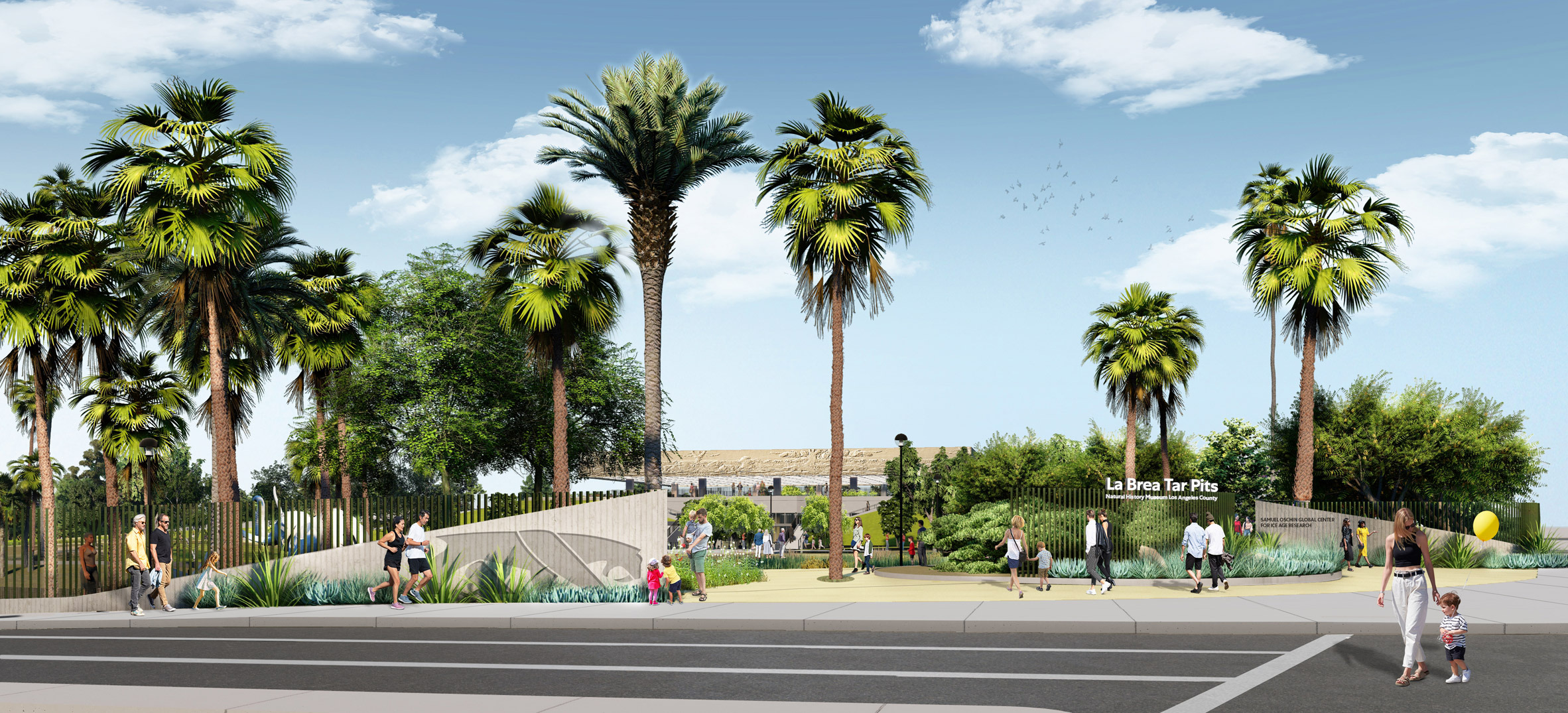 «План застройки основан на том, что уже является отличительной чертой "La Brea". Музей Пейдж, места активных раскопок и парк Хэнкок будут объединены в единый музей, тесно связанный с окружающим ландшафтом и районом», - заявили архитекторы. В планах - строительство Глобального центра исследований ледникового периода имени Сэмюэля Ошина, полупогружённого в воду выставочного здания, которое расширит существующие подземные помещения Музея Пейджа.