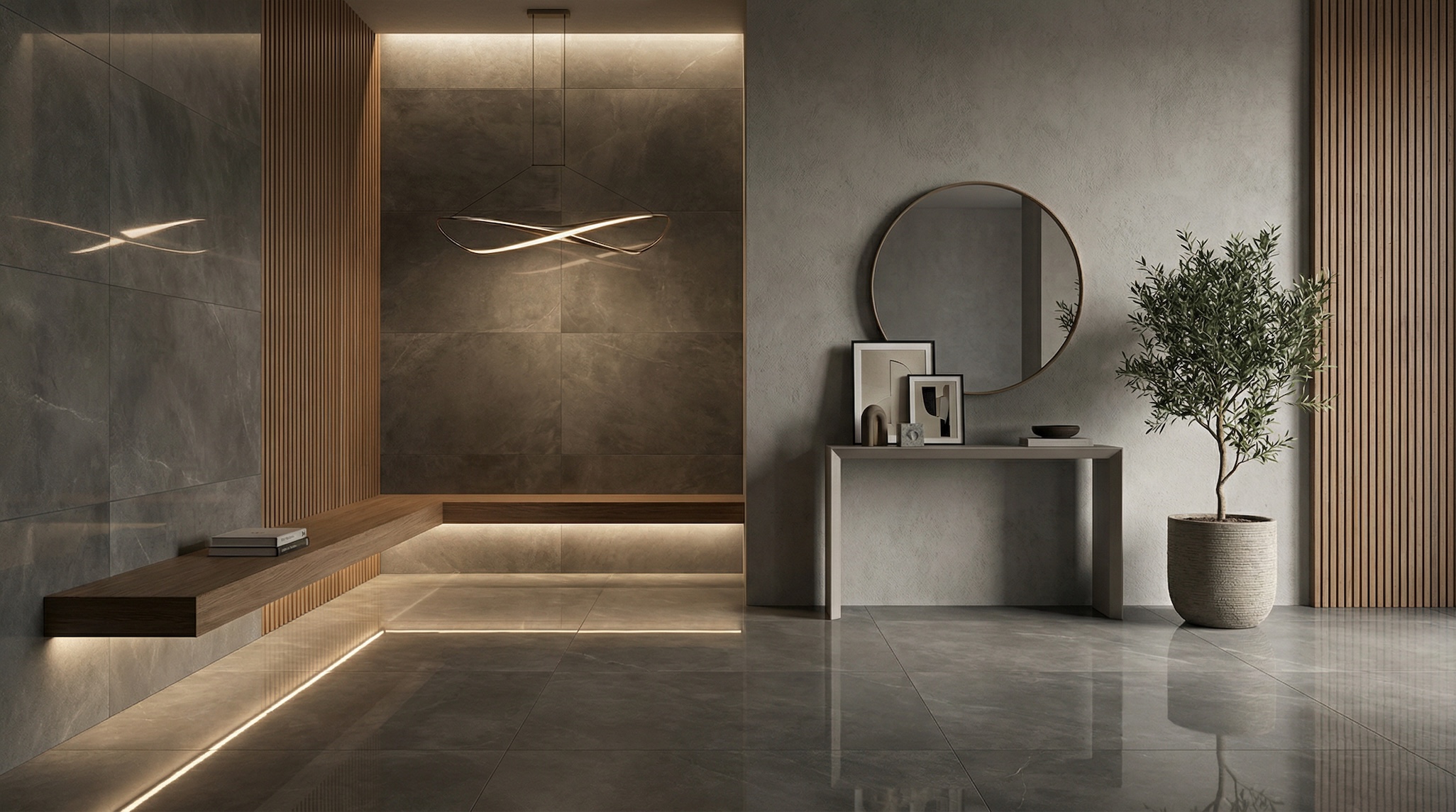 Кварцвинил (SPC/LVT). Западные дизайнеры называют его «тихим полом». Он не боится воды (в отличие от паркета), не «цокает» (в отличие от ламината) и ощущается теплым. Для семей с детьми и собаками это решение № 1 по износостойкости.