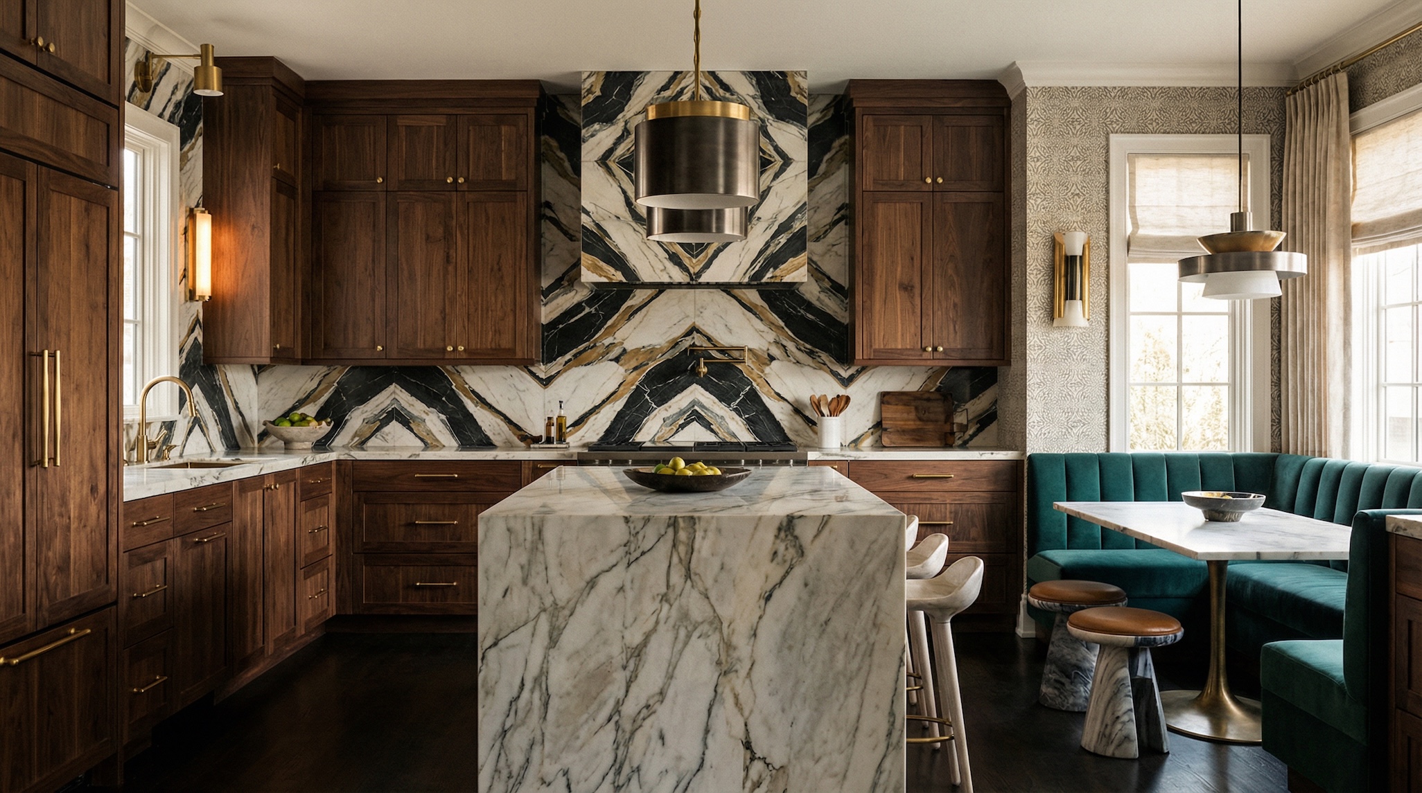 Искусственный камень (кварц) вместо мрамора. Натуральный мрамор порист: капля лимонного сока оставит на нем пятно навсегда. Кварцевый агломерат лишен пор. Он выдержит всё, кроме раскаленной сковородки, и всегда будет выглядеть как новый.