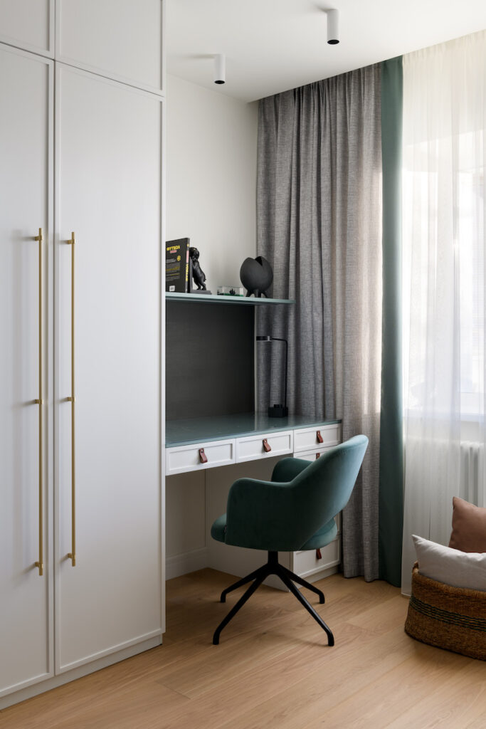 Полина Степанова: Каждый наш проект уникален и неповторим. Поэтому сильно отличается от других. Но вместе с тем отражает наш стиль. В нём есть элементы, которые характеризуют нашу студию. Присутствие заказчика тоже ощущается — он очень хотел изысканный, презентабельный и дорогой интерьер.