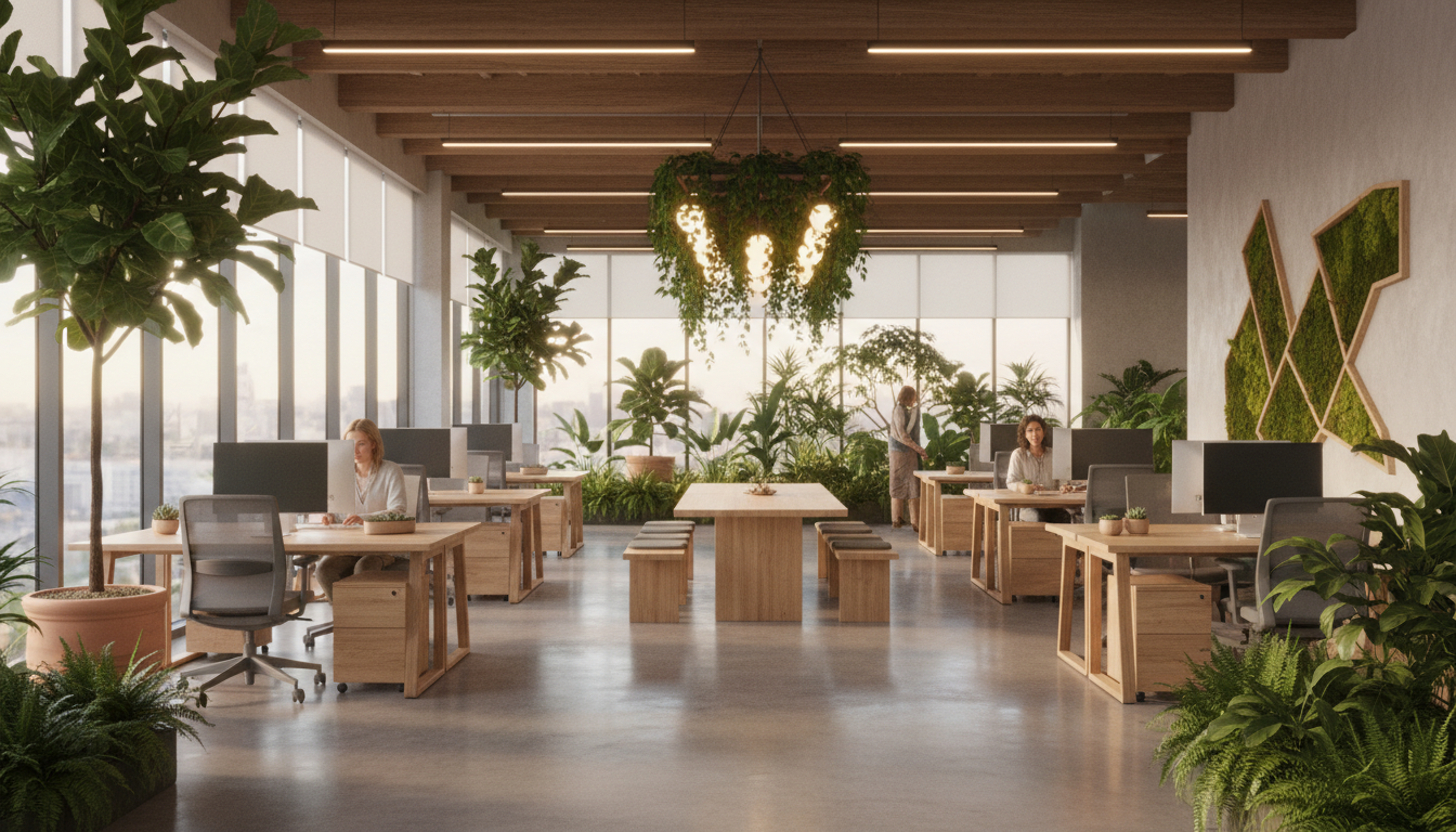 Вертикальное озеленение: зеленая стена или модульные живые панели в лобби/офисе. Вода и звук: небольшой водный элемент (фонтан) или использование натуральных звуков. Зонирование: биофильное зонирование рабочих мест (вид на зеленые зоны в офисе или природу за окном).Уровень 3. Амбассадор