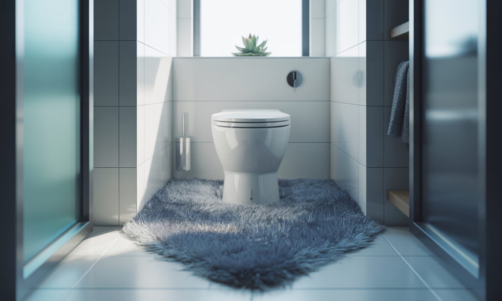 Что не так: Комплекты ковриков, особенно тот, что с вырезом под основание унитаза, — это просто КАРАУЛ! Во-первых, это гигиенический кошмар (даже думать не хочется, что там скапливается). Во-вторых, это визуально дробит пространство и удешевляет интерьер.