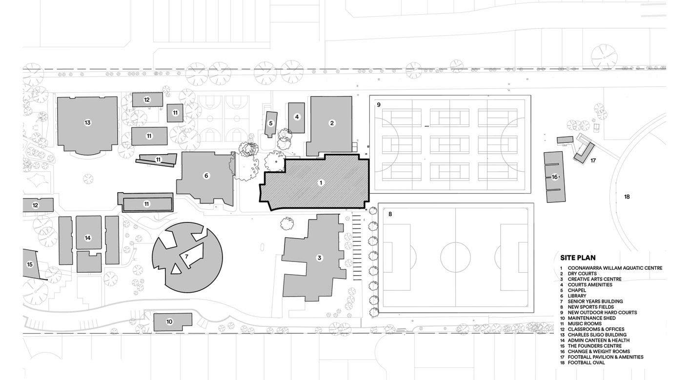 Центр водных видов спорта "Кунаварра Уиллам" переосмысливает то, как оздоровление, образование и культура могут сосуществовать в единой интегрированной среде. Проект начался с определения местоположения. Для Центра водных видов спорта Кунаварра-Уиллам на первом этапе была проведена оценка условий на площадке, включая топографию, факторы окружающей среды и то, как объект будет интегрирован с кампусом.