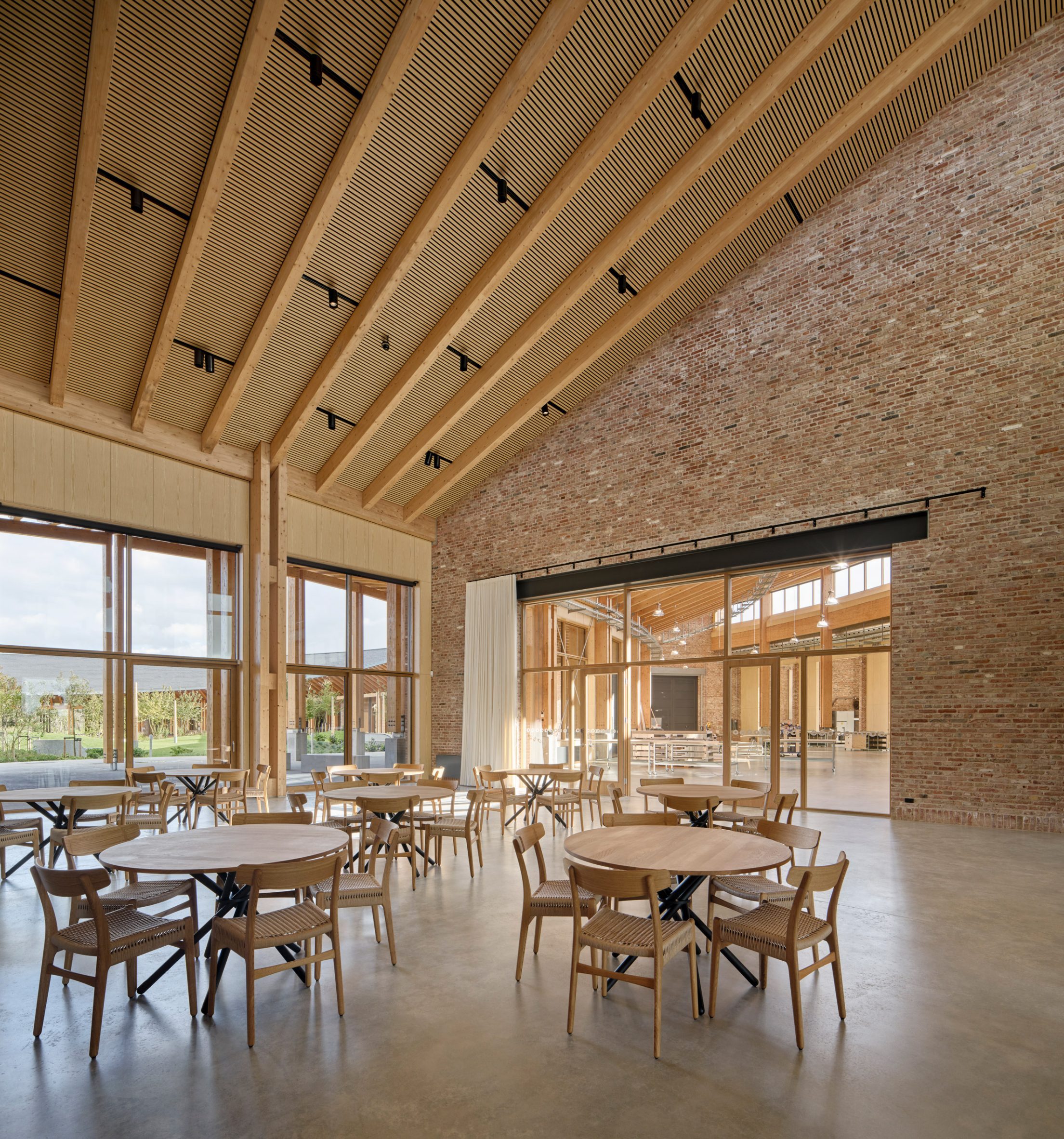 Эта палитра прослеживается и в интерьерах The Crafts College, где в общих зонах оставлена необработанная кирпичная кладка, а спальни обшиты деревянными панелями, за которыми скрываются вместительные встроенные шкафы. «Стремясь превратить здание в живой учебник, мы выбрали материалы, которые можно потрогать и которые легко использовать, чтобы ученики могли понять принципы тектоники и ремесленные методы», - объяснил Пайлеманд.