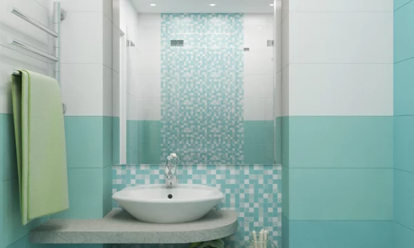 Дизайн интерьера ванной комнаты в бирюзовом цвете