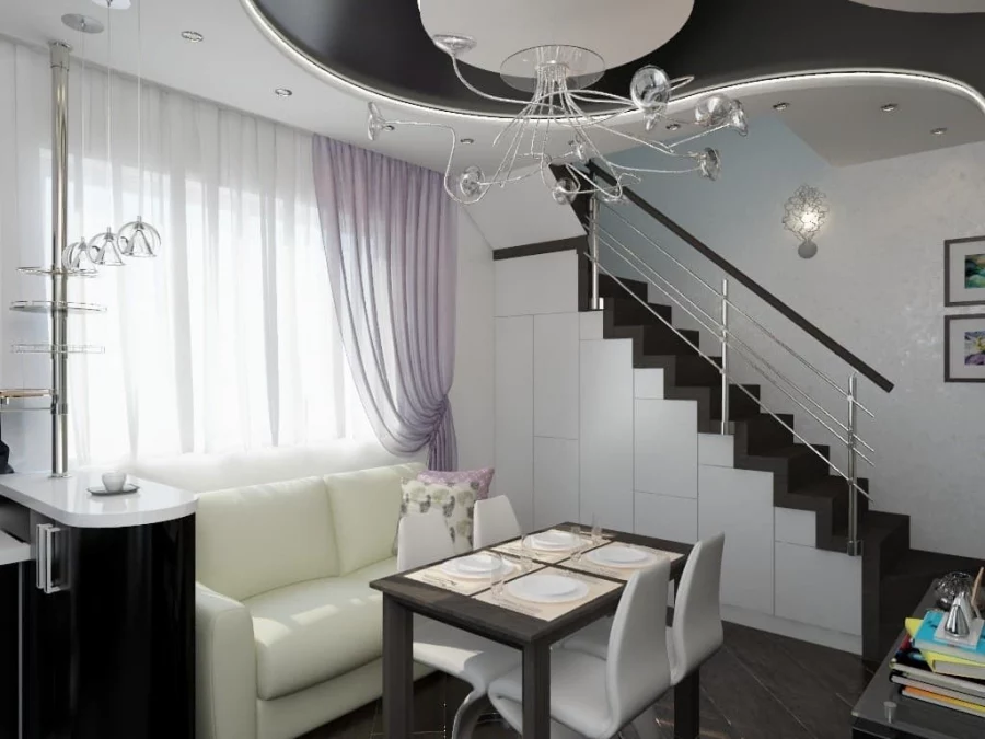 Стильный проект дома с высокими потолками. Зонирование потолков и обилие деталей гармонизируют пространство.