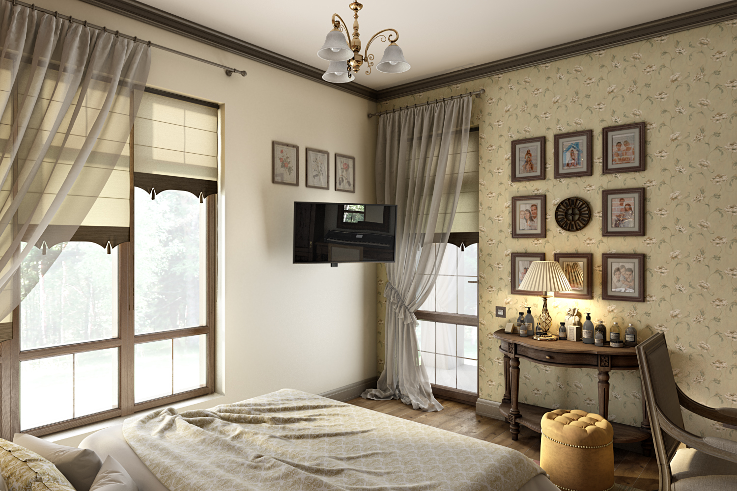 Дом в Краснодарском крае, разделенный на 2 части для проживания двух родственных семей. На фото представлена вторая часть дома. Интерьеры выполнены с элементами стилей кантри и прованс.