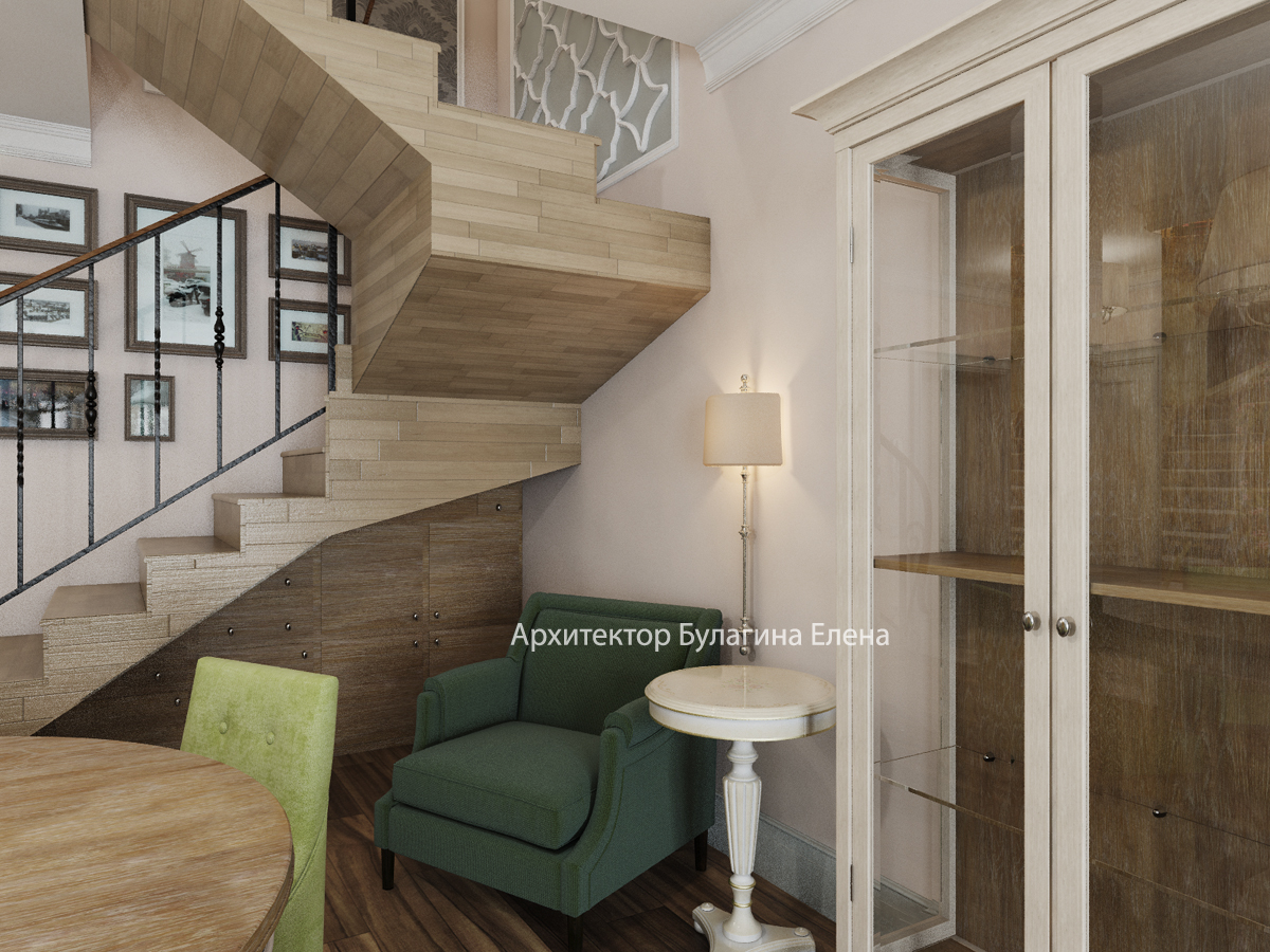 Обстановка комнаты: Столовая зона, Фотообои, С лестницей
