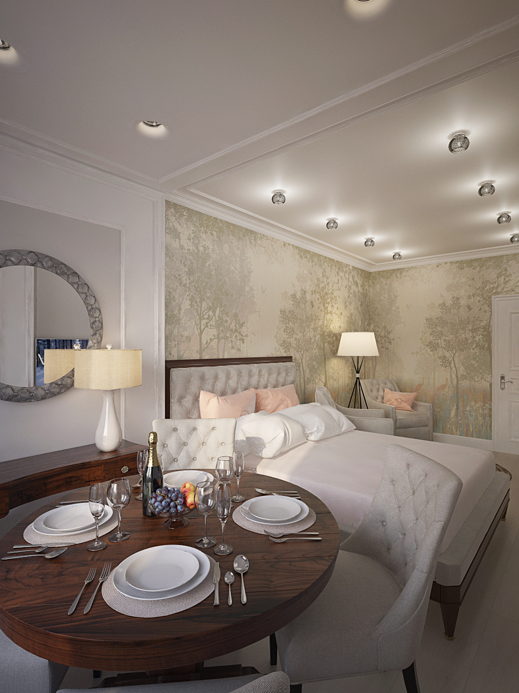 Интерьер разрабатывался для апартаментов на улице 40 лет Октября в Нижнем Новгороде.