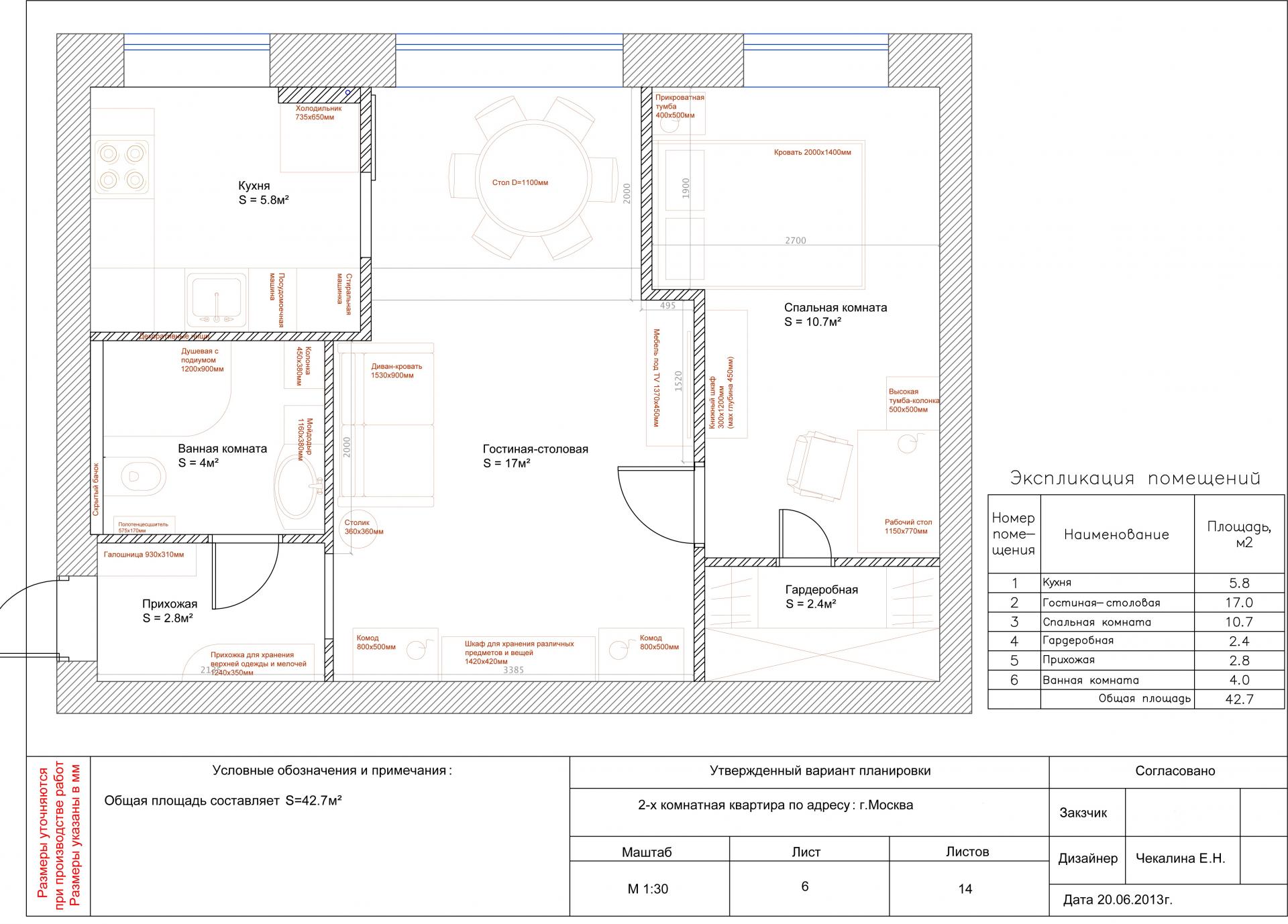 Эта квартира получилась как маленькое, теплое гнездышко, в котором есть всё что нужно: уютная и побуждающая к приготовлению еды кухня, обеденный стол возле окна, уютный диванчик, роскошная кровать в нише, рабочий угол и отдельная гардеробная.