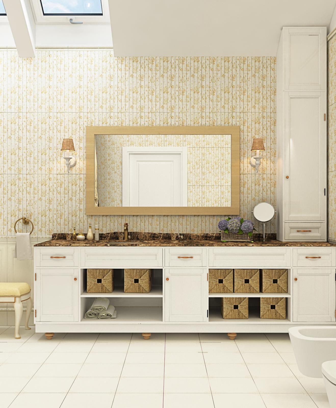 Обстановка ванной: Угловая ванна, С туалетом, Система хранения