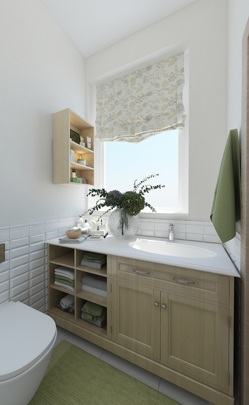 Дизайн-проект отдельного санузла возле спальни заказчиков в бежевом цвете.